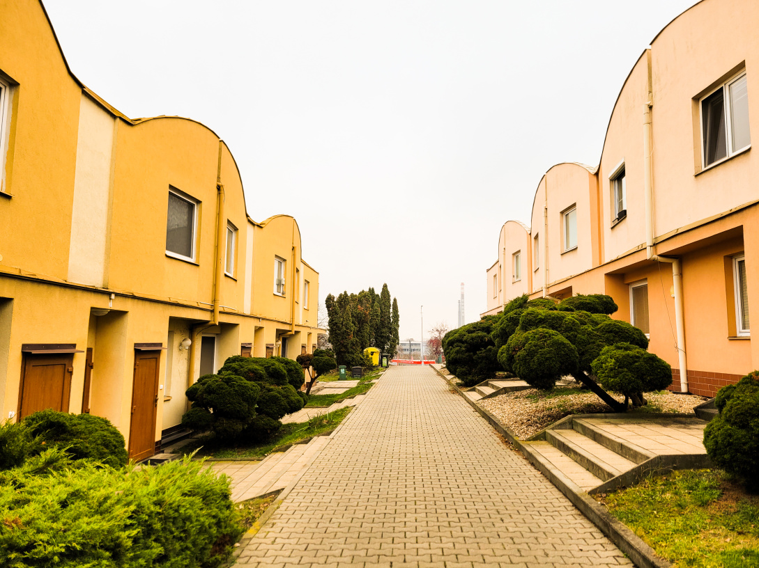 Dům je dvoupodlažní a nabízí klidné bydlení v malé komunitě.