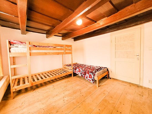 jsem tradiční zachováním původních prvků. Přestože mám ve všech obytných místnostech radiátory ústředního topení, můžete si zpříjemnit atmosféru zimních večerů teplem z klasických kamen.