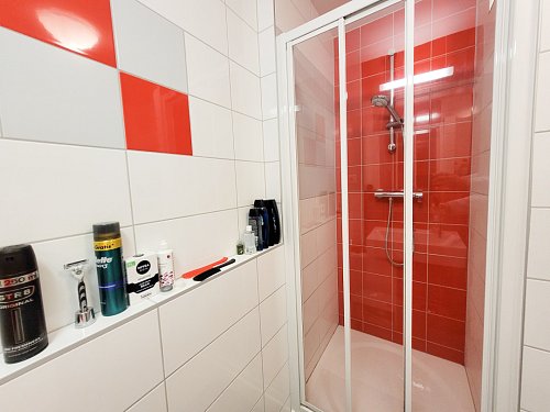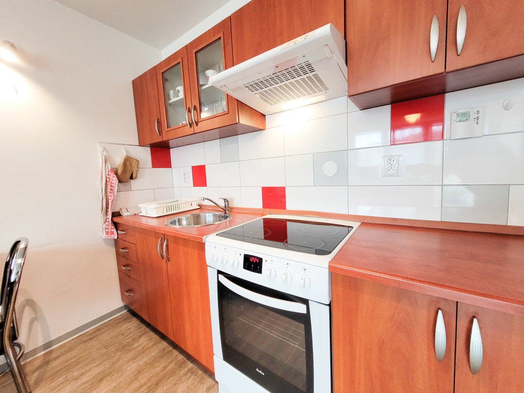 Navíc je vybaven vším potřebným včetně plnohodnotné kuchyňské linky a lednice. Pračka je umístěna v prostorné koupelně.